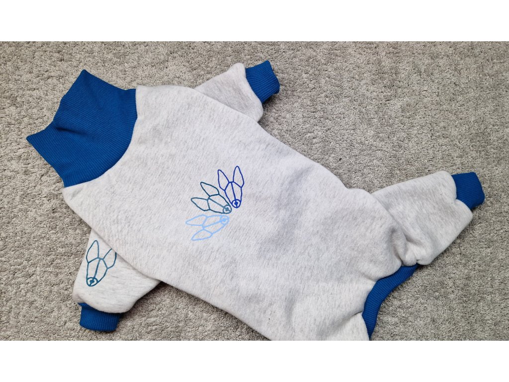 Overal z pružného warmkeepru v barvě šedá melange/petrolej s potiskem AHT . Zvenku teplákovina, uvnitř hebký kožíšek. Střih má delší nohavice, overal je teplý a neprofoukne.